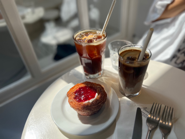 저는 딸기&우유버터 런던번과 아이스 아메리카노를 주문했어요. 딸기의 상큼함과 크림의 부드러움이 입 안에서 사르르 녹고, 진한 아메리카노가 단맛을 딱 잡아주는 조합. 커피 한 모금, 디저트 한 입이면 하루의 피로가 말끔히 씻기는 느낌이랄까요?