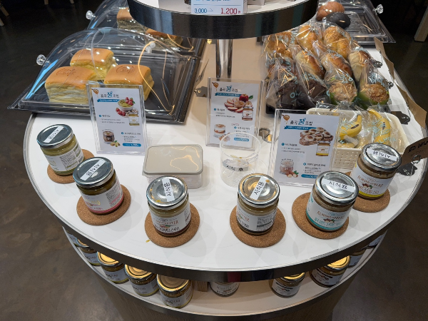 가게 안에 들어서면 땅콩버터를 직접 시식할 수 있는 코너가 마련되어 있어요.