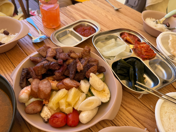 게다가 캠핑 감성으로 고기까지 구워 먹을 수 있는 구성이라