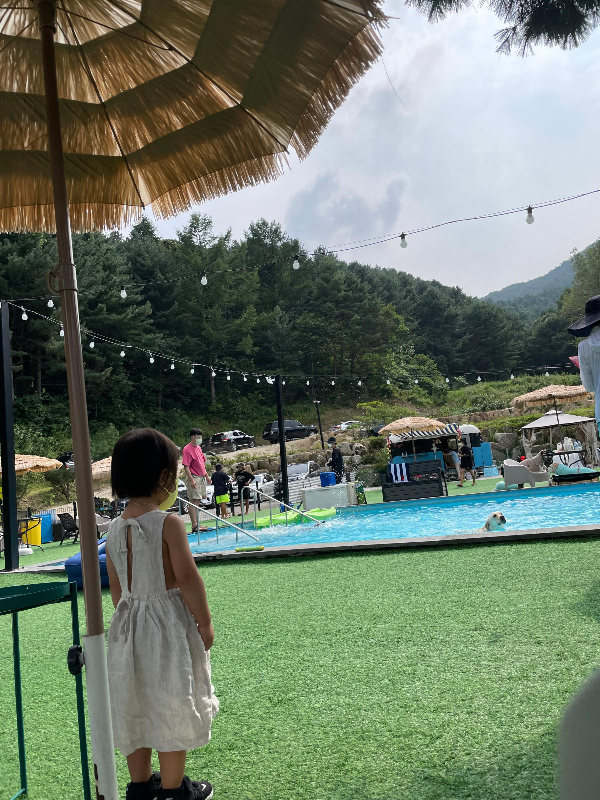 최근에 갑자기 "엄마 우리 예전에 수영장 있는 캠핑장 갔었잖아~" 하고 얘기하더라고요.