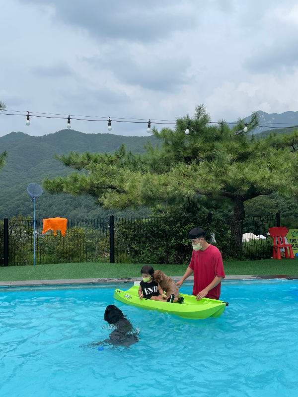 강아지도 튜브에 살짝 올려서 둥둥~ 너무 귀여운 장면들이었죠.