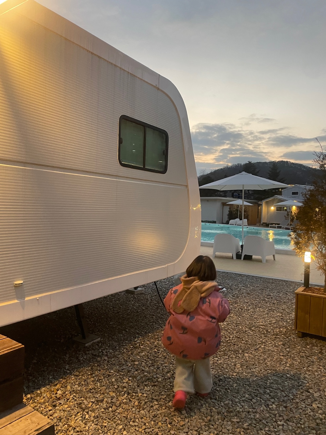 양주 잼잼 글램핑 카라반 당일 캠핑 후기 - 온수풀에서 수영도 즐겼어요!