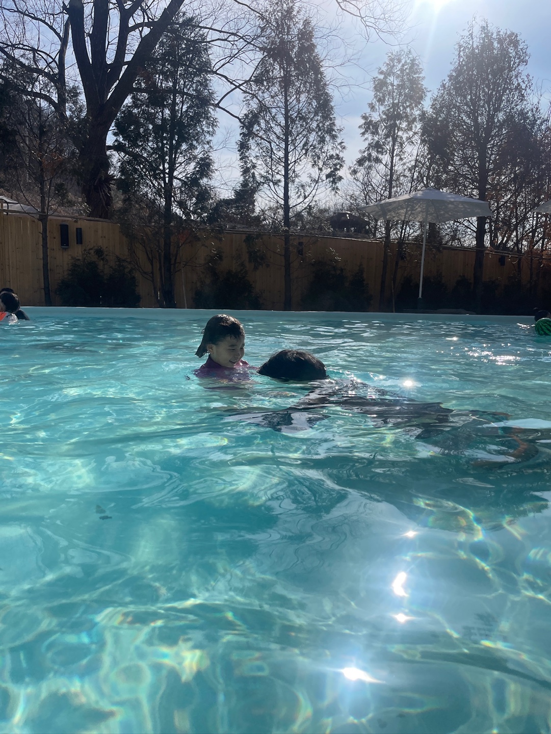 저희 가족이 잼잼 글램핑 카라반을 선택한 가장 큰 이유는 바로 수영장 물이 온수풀이라는 점이었어요! 보통의 글램핑장 수영장은 물이 차가워서 잘 이용하지 않게 되는데, 이곳은 물이 따뜻해서 아이들과 신나게 놀 수 있었습니다. 날씨가 조금 쌀쌀한 날에도 걱정 없이 물놀이를 즐길 수 있어 정말 좋았어요.