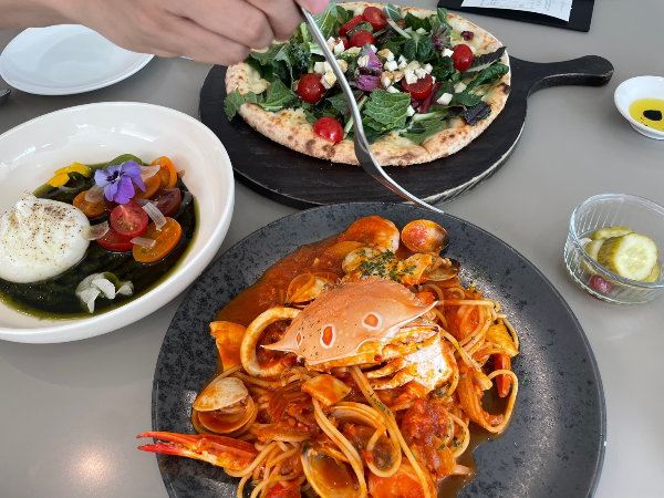 저희 가족은 해산물 로제파스타, 클라시카피자, 브라타 셀러드를 주문했어요.