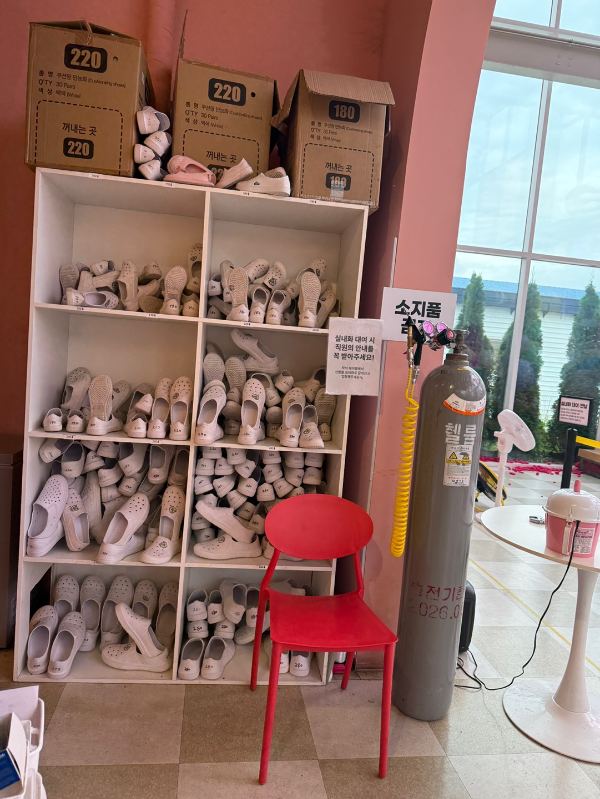 그런데 바닥이 철판이라 조금 미끄러울 수 있어서 꼭 실내화를 착용해야만 들어갈 수 있더라구요.