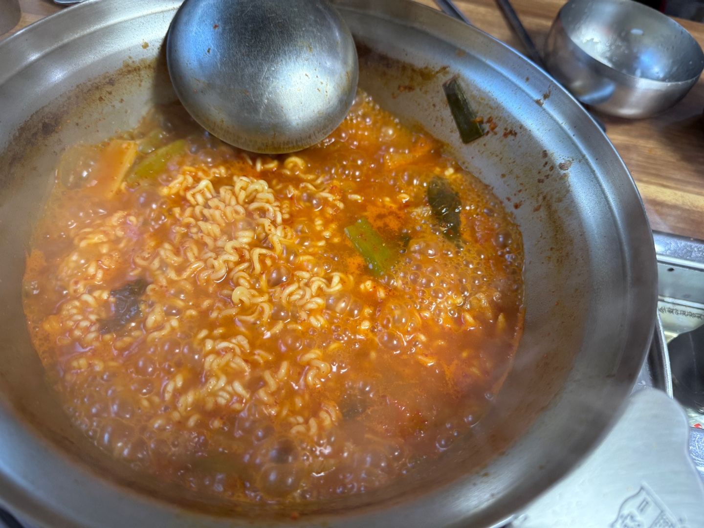 묵은지 깊은 감칠맛이 확 느껴진다. 국물 한 숟갈 떠보면 입안 가득 퍼지는 진한 감칠맛과 칼칼함이 중독적!