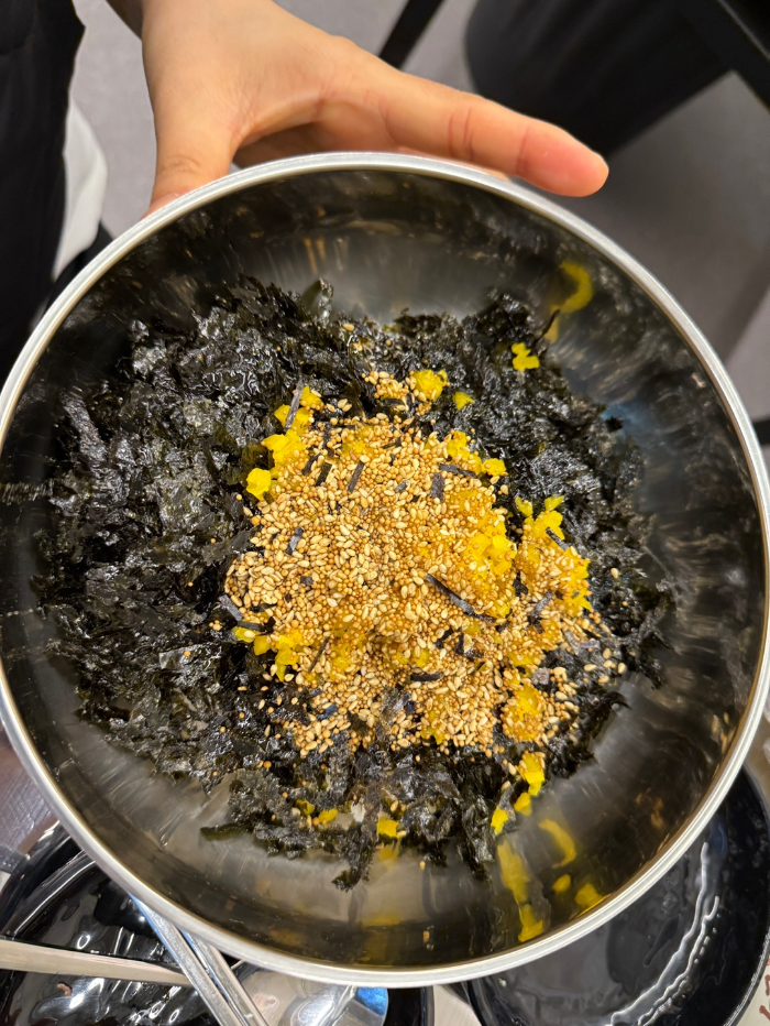 고슬고슬한 밥에 김가루 솔솔 뿌려져 있어서,
